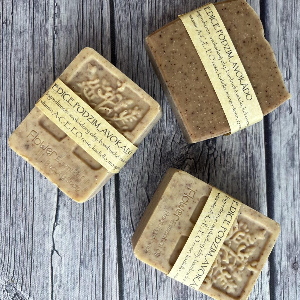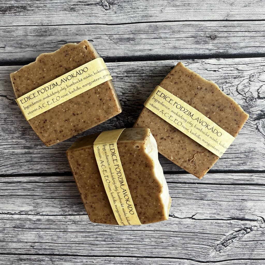 pečující mýdlo s avokádovým olejem s peelingovým efektem s jemně mletou avokádovou peckou