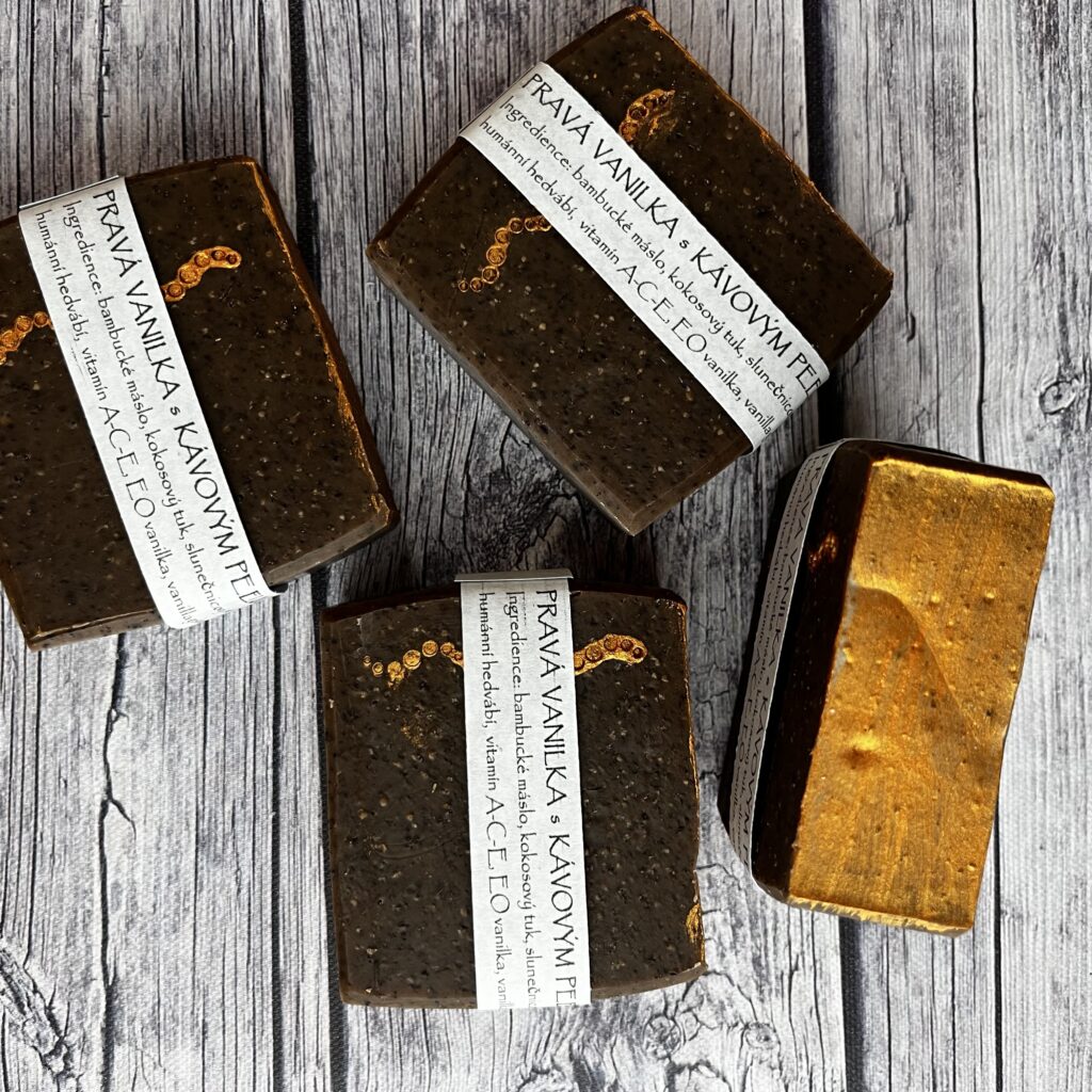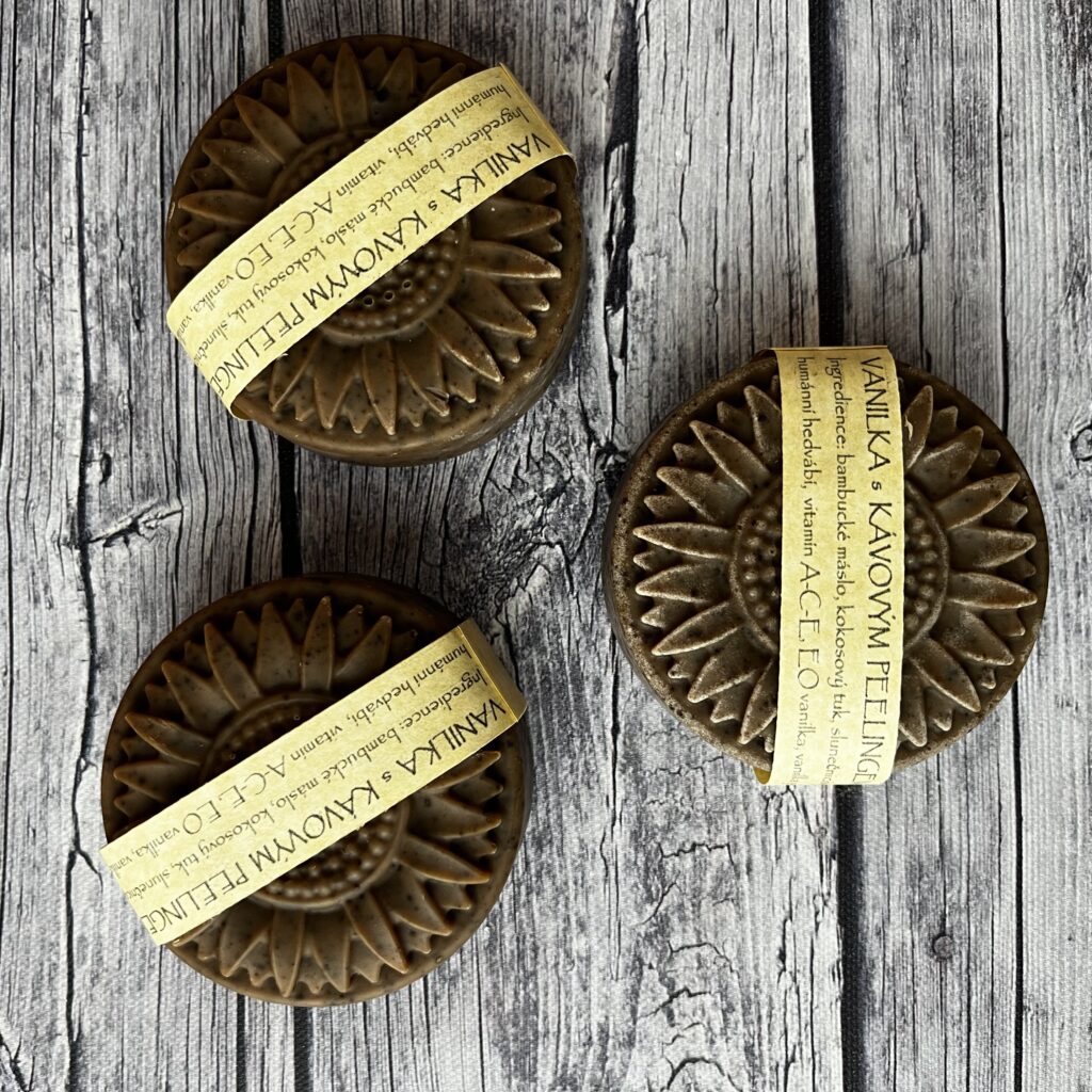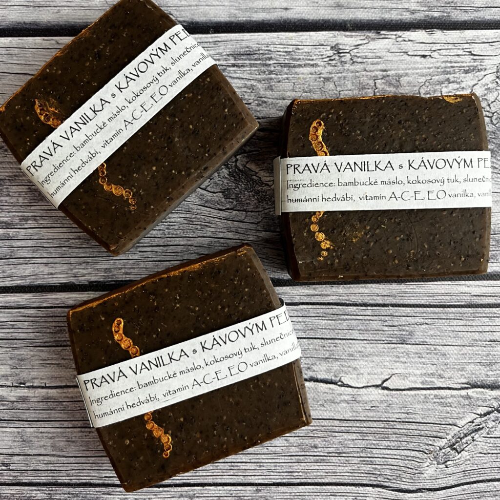 pečující mýdlo s pravou vanilkou, kávovým peelingem, čokoládou a kaakem